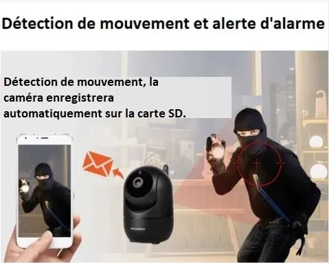 Connecté au WIFI, l'appareil compact et discret enregistre image et son. Dès qu'un mouvement est détecté, une alerte est envoyée au propriétaire. Il peut alors accéder aux images en se connectant à l'application de smartphone dédiée afin de visualiser la scène.